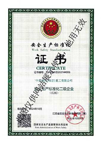 特種設(shè)備生產(chǎn)可證 | 安全生產(chǎn)標(biāo)準(zhǔn)化證書(二級) |