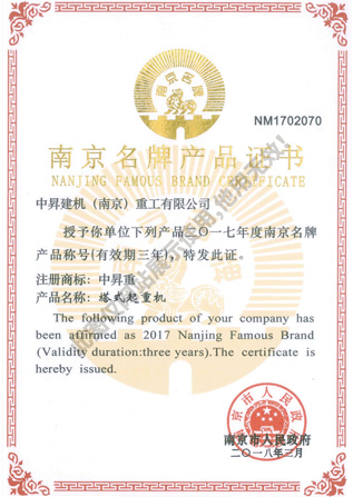 營業(yè)執(zhí)照 | 南京市名牌產(chǎn)品證書 |