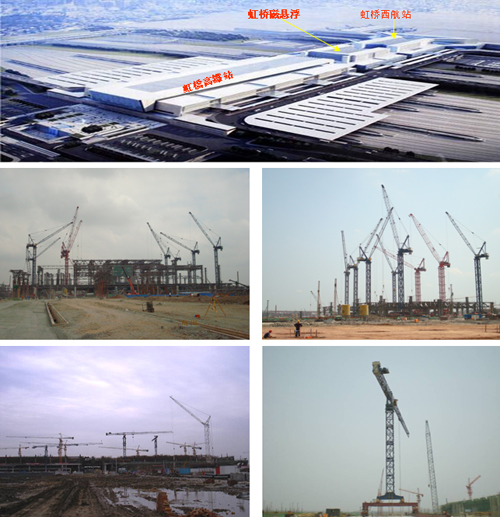 ◎上海虹橋京滬高鐵站采用中昇建機四臺ZSL1100行走式塔機(最大吊重40t)和二臺ZSL1200行走式塔機(最大吊重60t)