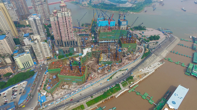 重慶來福士廣場(chǎng)的8座塔樓,2座施工高度220m,4座施工高度248m,2座施工高度348m,采用中昇建機(jī)ZSL1700(80T)一臺(tái),ZSL1500(64T)一臺(tái),ZSL1000(64T)一臺(tái),ZSL750(50T)四臺(tái),ZSL500(32T)六臺(tái),ZSL380(32T)六臺(tái)。