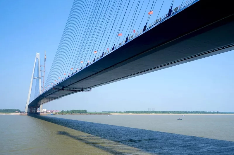 全長7548米的青山長江大橋,主跨達(dá)938米,是武漢四環(huán)線跨越長江的控制性工程之一,也是武漢市的第11座長江大橋。橋面比武漢沌口長江大橋還寬兩米,成為目前跨越長江橋面最寬的橋梁。