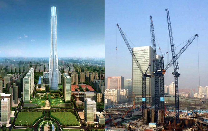 建筑主體高度632米,采用中昇建機(jī)ZSL2700(100T)一臺(tái)。