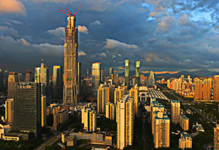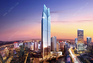 建筑主體高度438米,采用中昇建機(jī)ZSL1250(64T)及ZSL380(32T)各一臺(tái)。