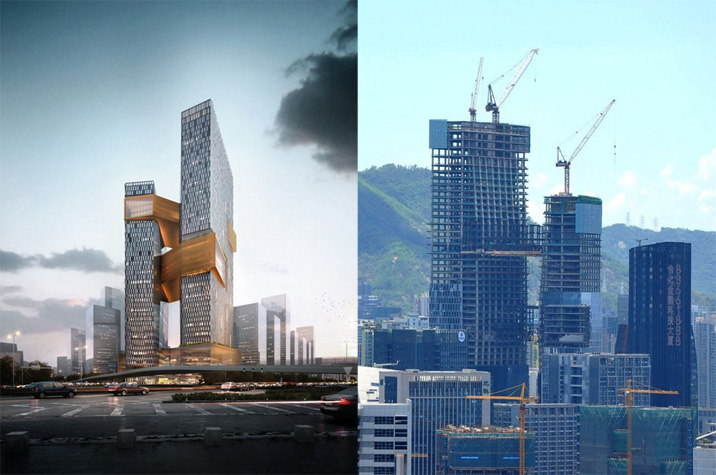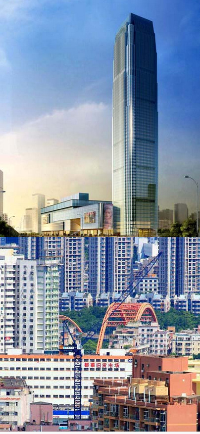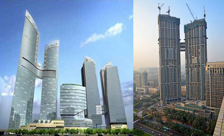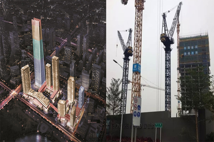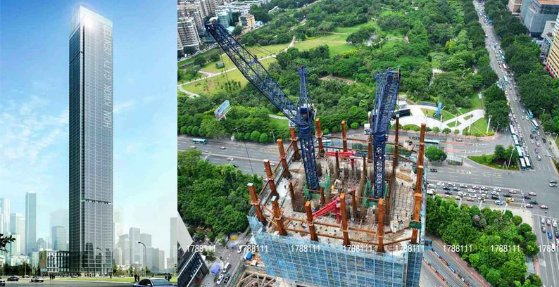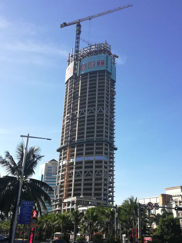 施工高度327米,采用中昇建機兩臺ZSL1250(最大吊重64t)