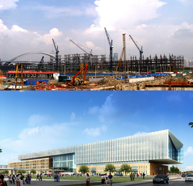 建筑面積84萬㎡,采用中昇建機(jī)ZSL1100(45T)五臺、三ZSL1150(45T)三臺。