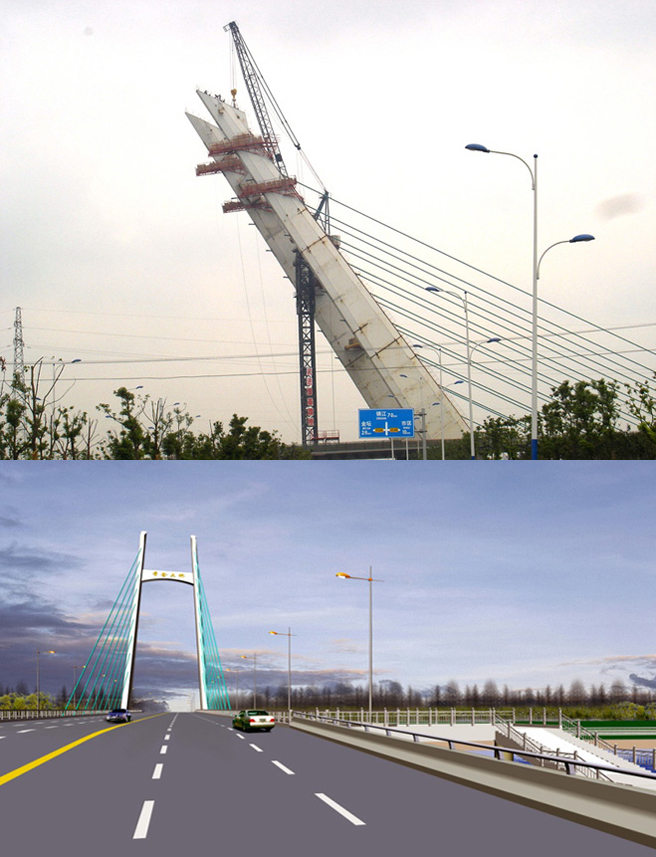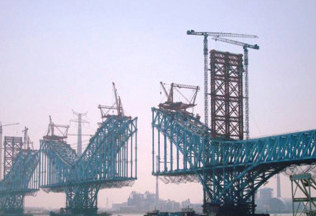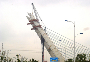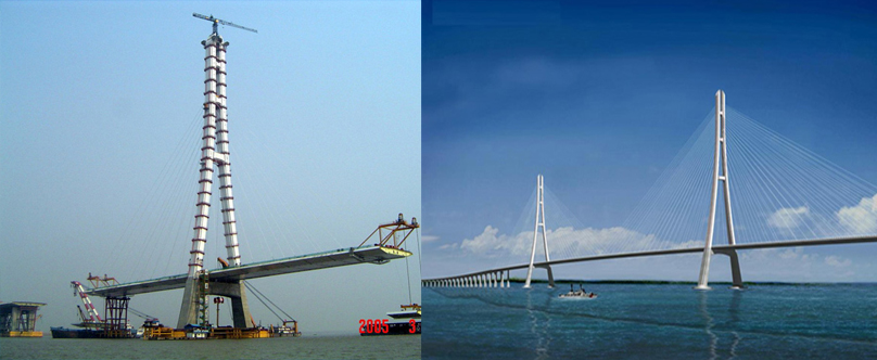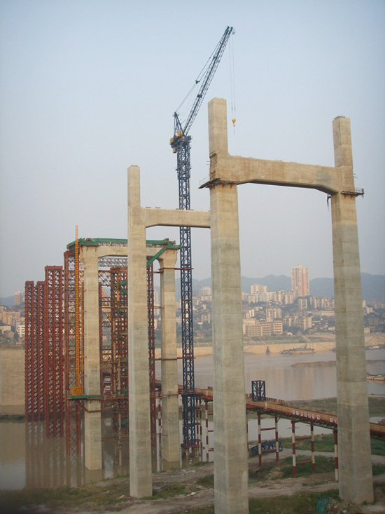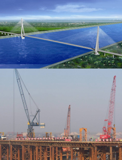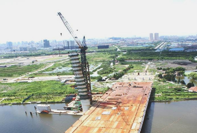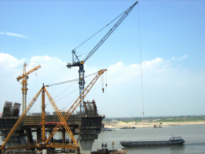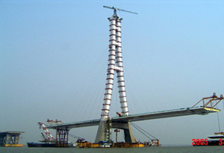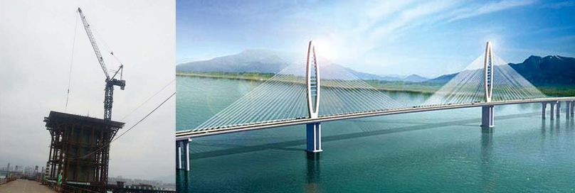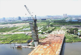 江蘇蘇通大橋跨徑1088米,采用中昇建機(jī)ZSL34300六臺(tái)(最大吊重80t)、ZSL5050一臺(tái)(最大吊重12t)、ZSL4060 一臺(tái)(最大吊重12t)