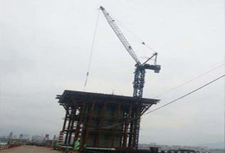 大橋長(zhǎng)度185米,采用中昇建機(jī)ZSC70240一臺(tái)(最大吊重80t)