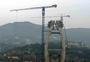 各采用中昇建機(jī)ZSL1000兩臺(tái)(最大吊重45t)